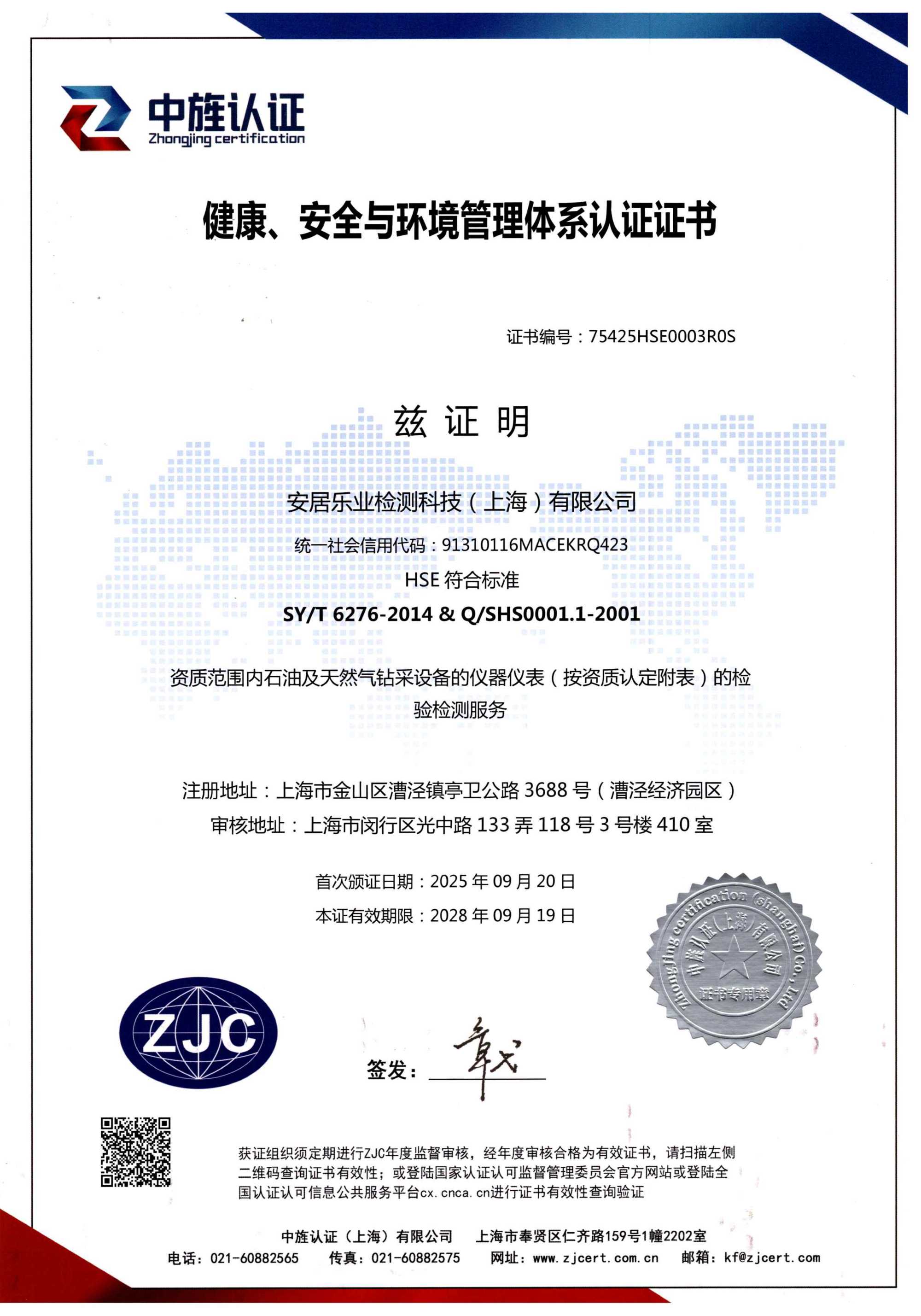 2025年,我们荣幸地宣布,公司已成功通过质量、环境、职业健康及HSE(健康、安全与环境)管理体系认证。这一系列重要资质的取得,标志着我们在规范化、标准化与可持续运营方面迈上了全新台阶,整体管理水平与服务能力达到了行业领先标准。